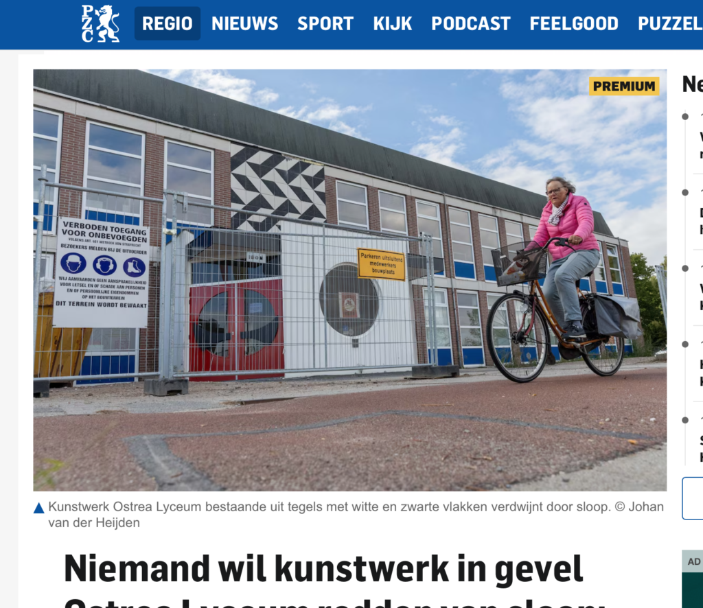 Ons steunfractielid Levien de Putter heeft zich ingezet om dit kunstwerk te redden. Hij startte een petitie en zocht samen met erfgoedvereniging Heemschut en andere betrokkenen naar een oplossing. De petitie kreeg steun, ook vanuit de gemeenteraad, maar helaas zonder resultaat. Het benodigde bedrag voor behoud (ongeveer 15.000 euro) werd door zowel de school als de gemeente niet beschikbaar gesteld. Daarmee is duidelijk geworden dat het kunstwerk zal verdwijnen.