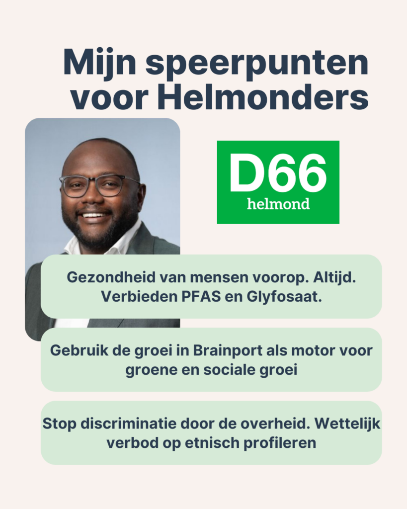 Wij zijn er trots op dat Mpanzu Bamenga, tweede kamerlid voor D66, zaterdag 27 September in gesprek gaat met Helmonders.