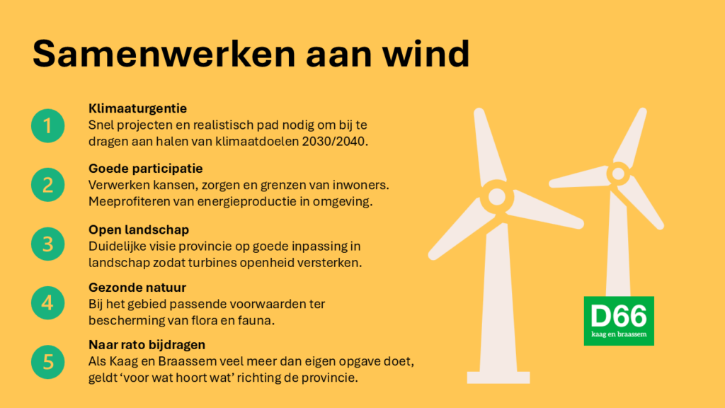 D66 toetst mogelijke voorstellen van de provincie en plannen voor windturbines op vier elementen: