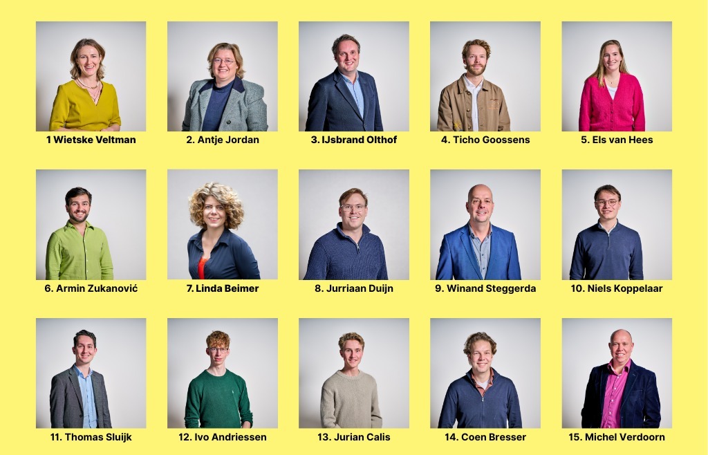 De top 15 bestaat uit vertrouwde gezichten zoals Antje Jordan, IJsbrand Olthof en Linda Beimer en nieuwe krachten zoals Ticho Goossens, Els van Hees en Winand Steggerda. Ook zijn beide ervaren duo-raadsleden Armin Zukanović en Jurriaan Duijn terug te vinden in de top-10.