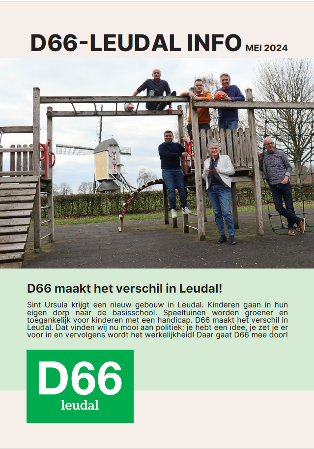 In dit blad zijn de belangrijke punten samengevat die D66-Leudal (mede) heeft bereikt in de afgelopen vier jaar. Ook kunt U een brief lezen van onze fractievoorzitter Jort Raemakers en een interview met Marion Dirken, lid van de programmacommissie.