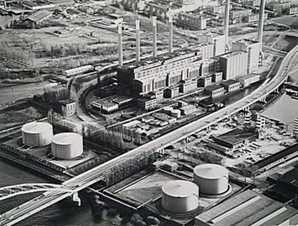 Beeld: De Merwedecentrale op de Kerkeplaat bij de Eerste Merwedehaven (bron: beeldbank regionaalarchief Dordrecht)