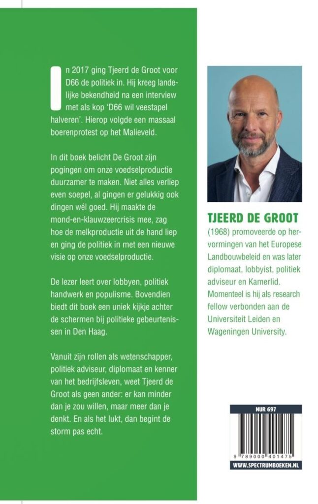 “Op veel manieren dragen mensen bij aan een betere wereld. De een scheidt zijn afval, de ander staat in de kantine van de voetbalclub en weer een ander blokkeert snelwegen om aandacht voor het klimaat te vragen. Zelf koos ik voor de publieke zaak in studie en werk. Ik wilde aan de knoppen zitten om verandering teweeg te brengen. Dat viel niet mee. Waar kleine ingrepen beperkte weerstand veroorzaken, zorgt een grote hervorming voor massale weerstand. Dat heb ik aan den lijve ondervonden. Ik laat zien hoe het is om van dag tot dag aan je idealen te werken in een omgeving die verandering allerminst bevordert. Daarmee schijnt dit boek een licht op hoe Nederland wordt (on)bestuurd. Met voorbeelden uit landbouw en natuur beschrijf ik mijn pogingen iets in beweging te krijgen, en hoe dynamisch stilstand kan blijken te zijn. Je kunt niet zeggen dat er niets is gebeurd, wel dat er nog te weinig is bereikt.”