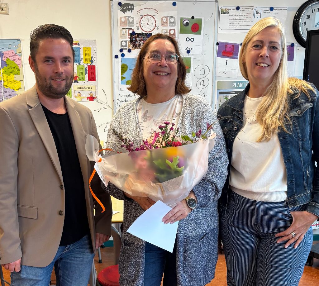 De uitreiking van de prijzen was op de scholen waar de winnaars werkzaam zijn. Onder luid applaus van leerlingen en collega’s nam Wisse Wortman de onderscheiding, een glazen trofee met de tekst ‘Leukste Leerkracht 2025-2026’, en een bos bloemen in ontvangst. ‘Een grote eer’, zei hij. Hoewel hij al had gehoord van de verkiezing, had hij niet verwacht om te winnen. Ook Jim Nieland en Karin Klein lieten weten vereerd te zijn met hun oorkonde en de mooie bos bloemen. Zij waren volkomen verrast en gingen ook trots op de foto.