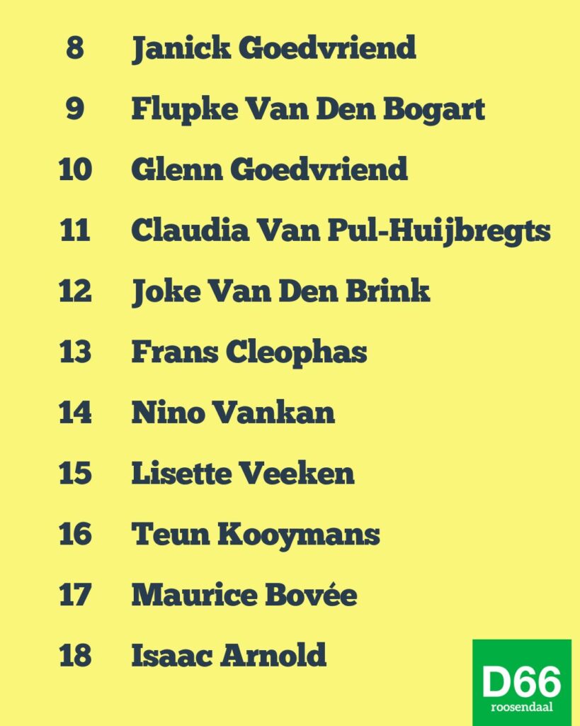 D66 Roosendaal presenteert met trots de kandidatenlijst voor de gemeenteraadsverkiezingen van 2026!