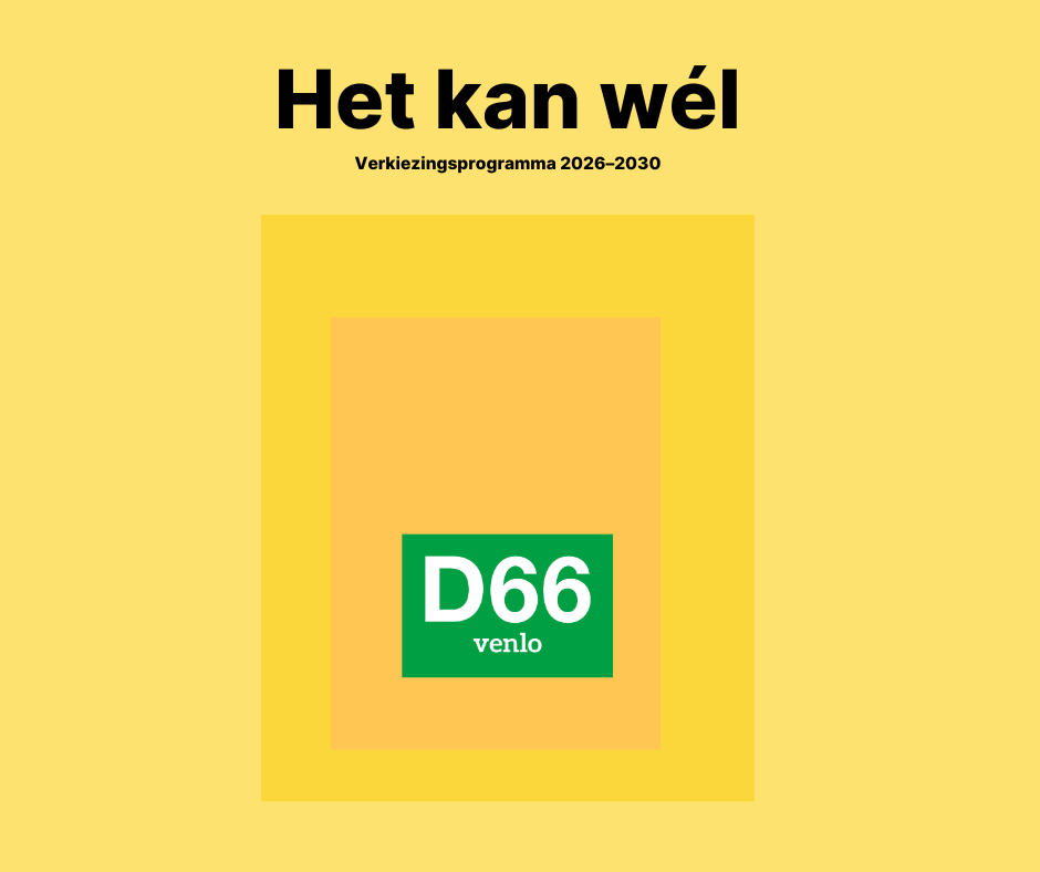 D66 Venlo gelooft in vooruitgang. In een gemeente die groeit, kansen biedt en problemen aanpakt. We investeren in onderwijs, omdat dat de motor is voor kansengelijkheid. We bouwen 2000 woningen in 4 jaar. We hebben vertrouwen in mensen, oog voor talent en de mouwen opgestroopt. D66 staat voor een bruisende stad waar altijd iets te doen. Levendige dorpen, met voorzieningen. Ruimte voor ondernemerschap.