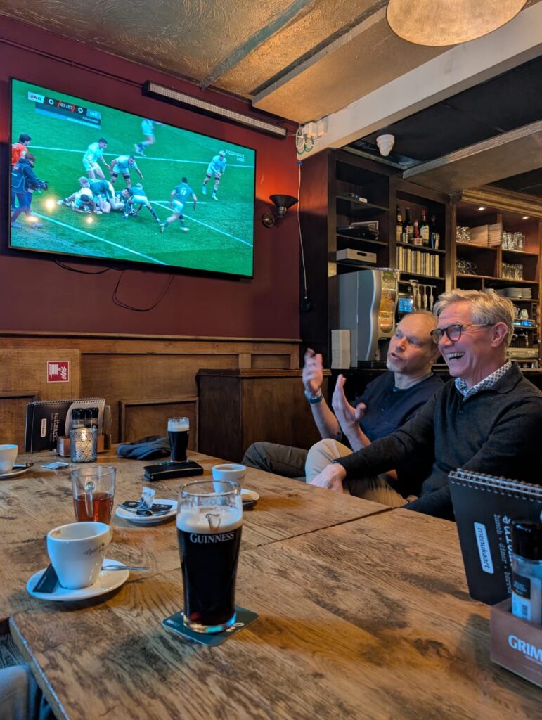 Niet alleen gingen we de straat op om te praten met onze inwoners, maar ook hebben we gezellig een wedstrijd rugby van Engeland tegen Ierland gekeken. Daar werd – onder het genot van een hapje en drankje – gesproken over de rugby, maar ook de lokale en nationale politiek.