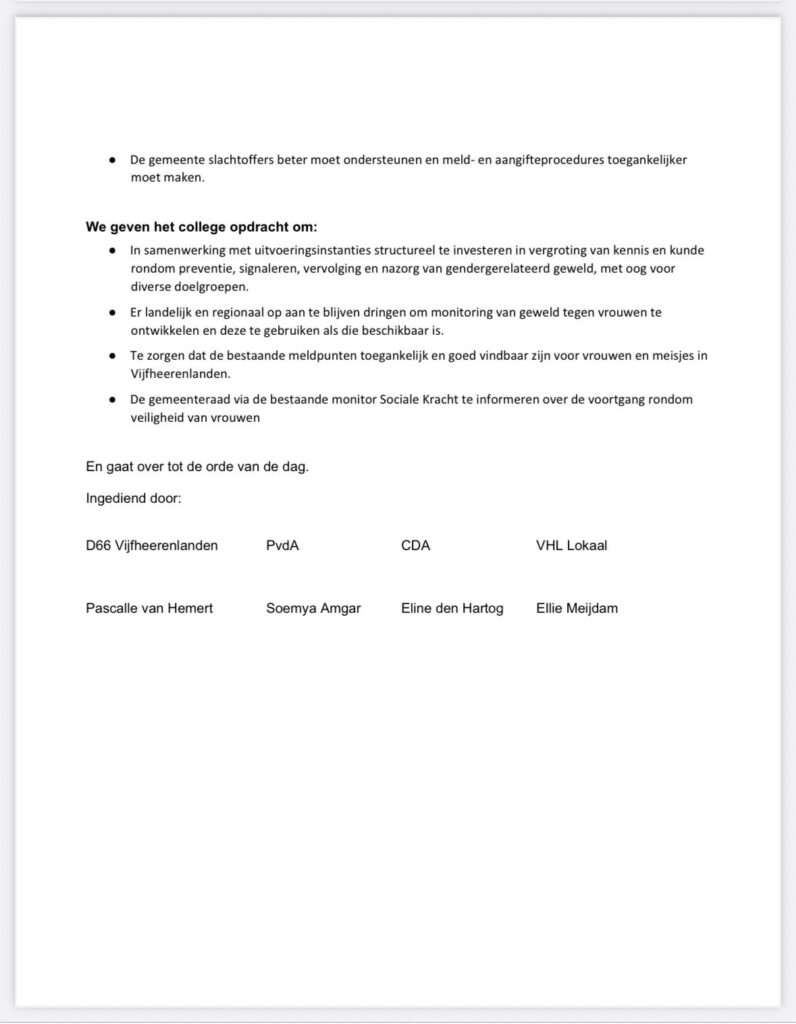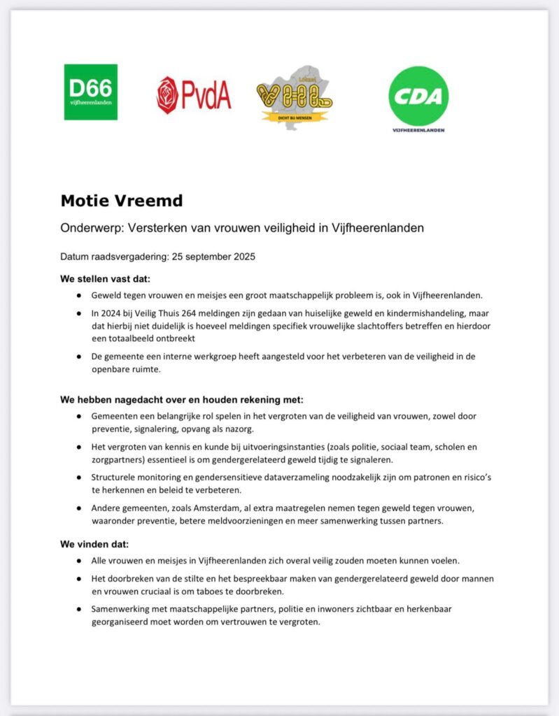 Met dit raadsbrede besluit laat Vijfheerenlanden zien dat vrouwenveiligheid blijvend en zichtbaar op de politieke agenda staat.