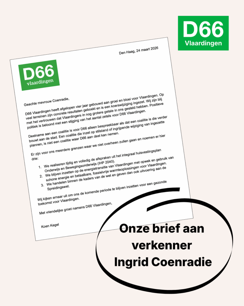 Lees hieronder de brief die D66 Vlaardingen naar verkenner Ingrid Coenradie stuurde, en die is toegelicht tijdens een gesprek in Den Haag.