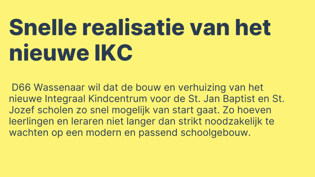 D66 wil dat alle kinderen toegang hebben tot sport, cultuur, Natuur- en techniekactiviteiten na school. Scholen werken samen met verenigingen en instellingen via subsidies en de Wassenaarpas; zo blijft deelname voor iedereen mogelijk.