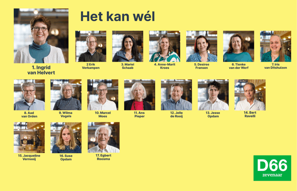 Onder leiding van Ingrid van Helvert zal D66 in Zevenaar met nieuwe energie de campagne inluiden. De lijst bestaat uit maar liefst 10 vrouwen en 7 mannen. Bekende en nieuwe gezichten die zich namens D66 inzetten voor gemeente Zevenaar. Bekijk hier een impressie van de vergadering. Het kan wél