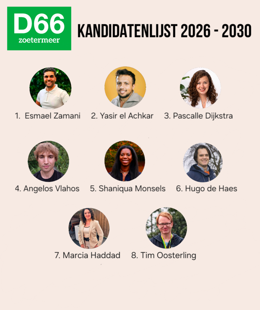 “Deze lijst laat zien hoeveel talent en toewijding er in onze afdeling aanwezig is. We hebben mensen gevonden die Zoetermeer écht kennen en die met uiteenlopende achtergronden iets willen betekenen voor de stad. Ik ben ervan overtuigd dat deze groep klaarstaat om met inhoud, visie en scherpte het werk in de raad op te pakken.”
